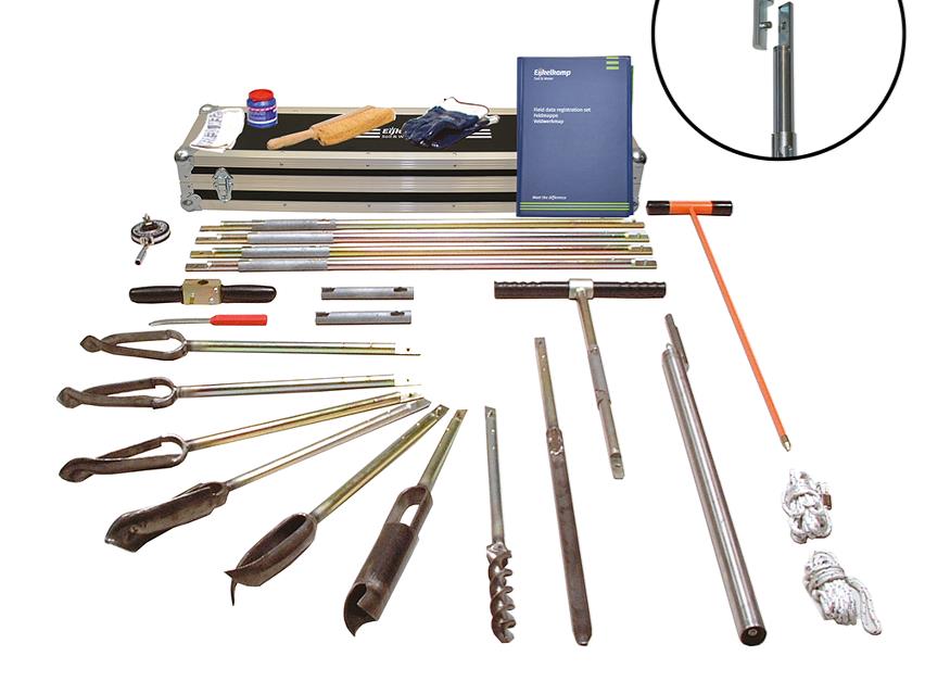 Solidt udstyr til håndboringer ned til 5 meters dybde. Alle borehoveder er fremstillet i ubehandlet stål for at sikre ukontaminerede jordprøver. Stænger og tilbehør er el-galvaniserede og har bayonetsamlinger som standard. Alternativt kan leveres med gevindsamlinger.