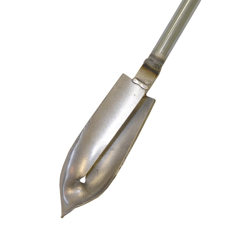 Smal bøjet spatel til undersøgelse af jordprøver i felten