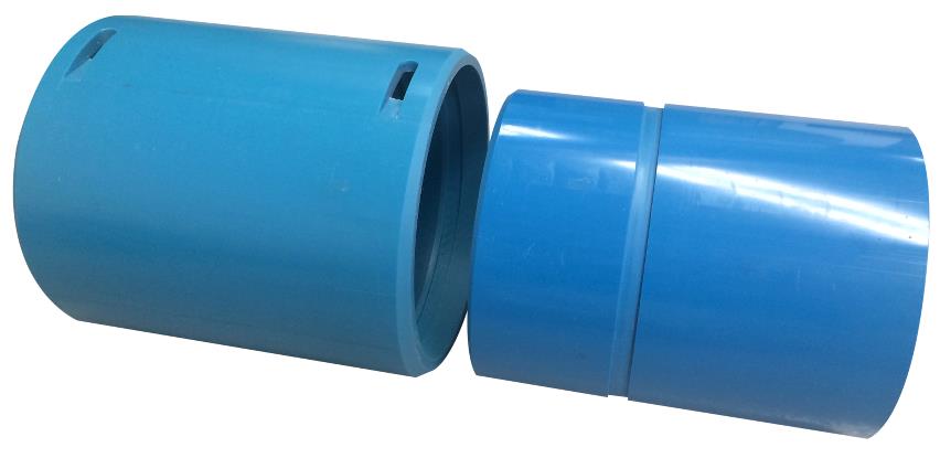 RSC samlemuffen er udført med centerstop, limflade (valgfri), udfræsning med o‐ring, kvældende tætningsbånd og låsering med firkantet tværprofil.