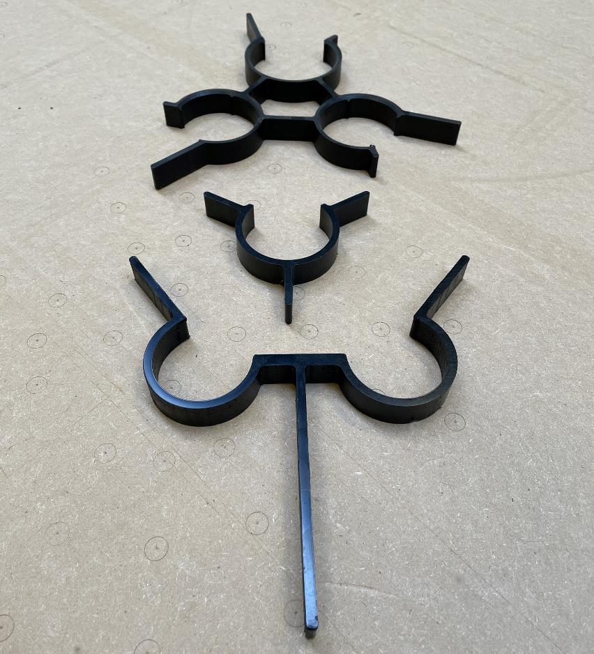 Omega Filterstyr til centrering af 2 stk Ø63mm rør i Ø290mm rør. Inkl strips