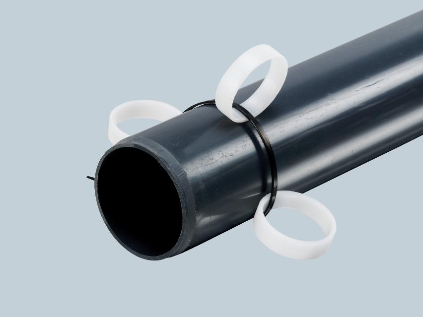 Centreringsringe i ufarvet PEH til alle typer rør. Monteres med en enkelt strip. Ringstyret leveres i to udgaver. Den ene anvendes til rør fra Ø32mm til Ø63mm. Den anden anvendes til rør fra Ø75 mm til Ø125 mm. Et sæt består af 3 ringe og 1 strip.