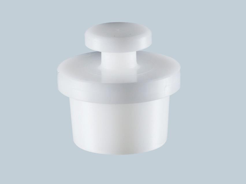 Konisk topprop med kappe og uden gevind. Proppen går ned omkring røret og skjuler samlingen.