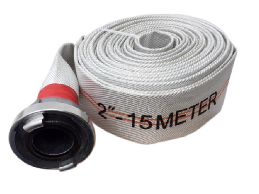 Hvid brandslange med Storzkobling. Leveres i 15m ruller.