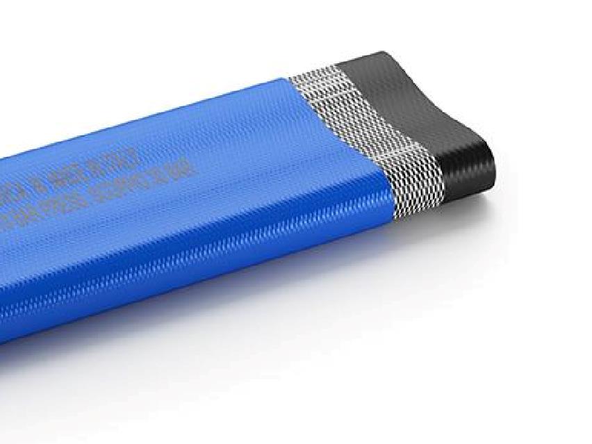 Fleksibel fladliggende nitrilgummi (NBR) slange med polyester armering. Trykslange til transport af væsker indenfor landbruget, industrien og entreprenørområdet. Leveres i 100m, 60m eller 30m ruller.